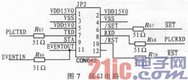 接口电路的主要作用是为载波模块与外界提供接口,提供电源并建立通信。接口电路如图7所示。
