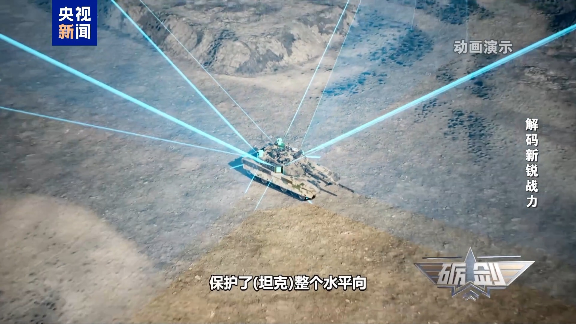 中国兵器工业集团第二〇一研究所 陈日明:GL6主动防护系统具有大角域多频次拦截的能力。它可以拦截空中高仰角来袭的攻顶弹药。在特定的方向,它可以多频次拦截对方来袭目标(弹药),在特定的部位(方向),可以完成四次拦截,拦截概率是非常高的。