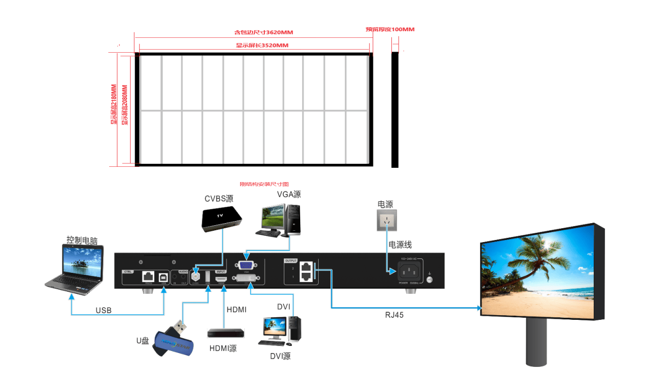 选型:前台大厅用55英寸以上液晶拼接屏或LED屏,办公区用43英寸以上液晶海报机。