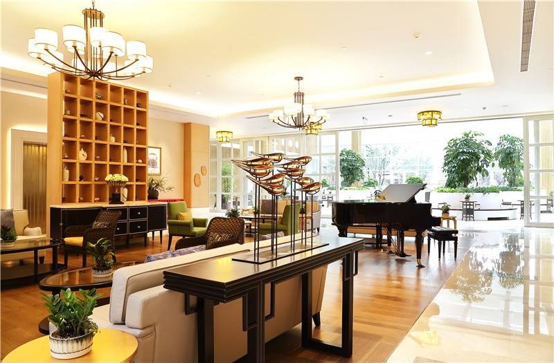全空间宜老居所:“庭空间、居空间、飨空间、雅空间、健空间、友空间”,中庭由大面积的绿植与水系景观共同构成,形成社区天然氧吧,同时庭院巧妙嵌入了记忆花园、运动草坪、林荫长廊、迷你种植等区域。