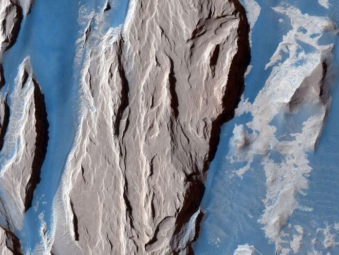 美国航空航天局在火星上还发现过蓝色的沙丘。对此,NASA未能做出解释,他们只是认为沙子的结构和成分可能与周围的沙子有所差异,但是它的诞生原因仍然是一个谜团。