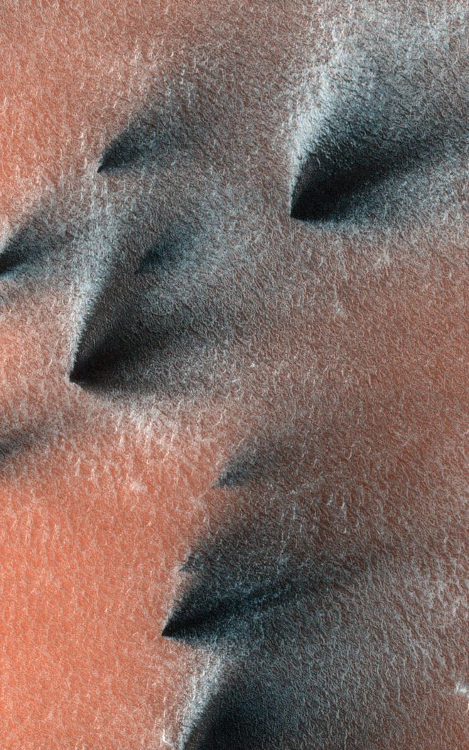 2020年1月16日,火星勘测轨道器(MRO)拍摄到了火星上两种类型的沙丘:新月形沙丘和线形沙丘。