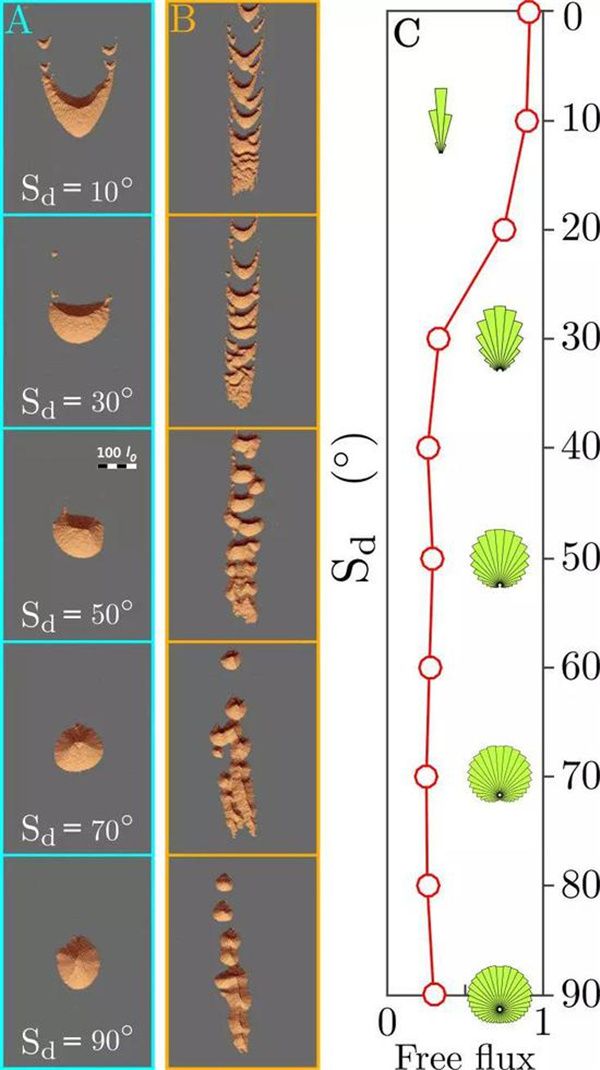 数值模拟中不同风况作用下的沙丘形态特征,通过这些大大小小的“馒头”穹状沙丘,科学家可以推算出这个区域刮了什么风,吹了多少沙。(图源:中科院之声)